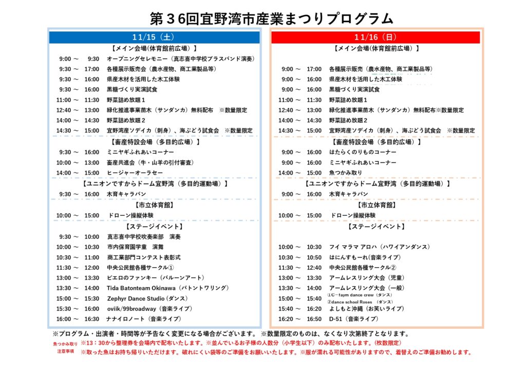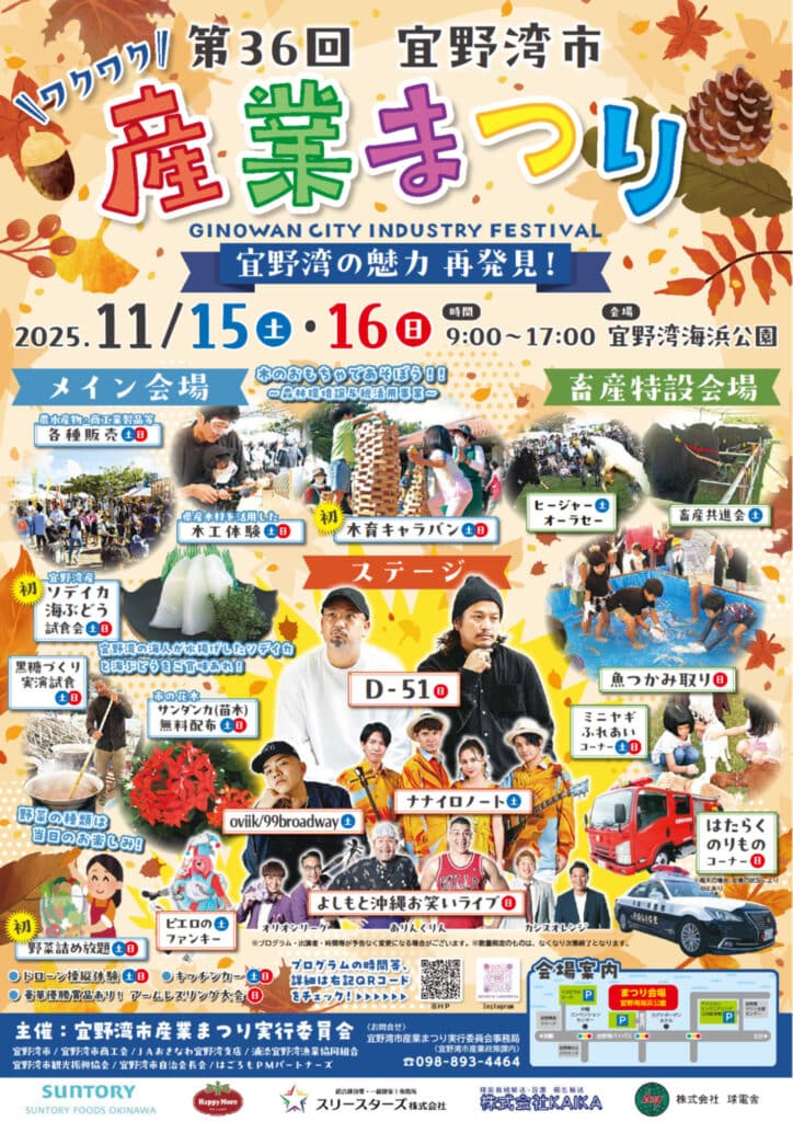 【2025年11月15・16日開催】第36回 宜野湾市産業まつり|家族で楽しむ体験・グルメ・ステージイベントが満載!