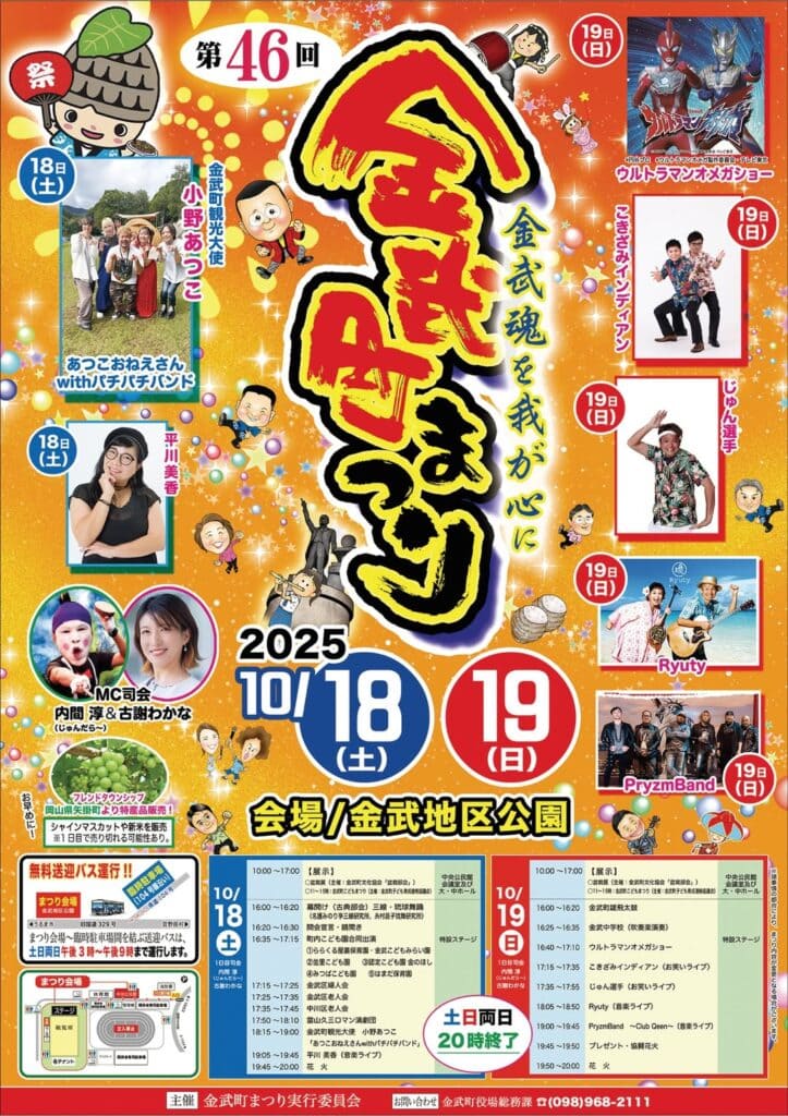 「第46回 金武町まつり」が、2025年10月18日(土)・19日(日)の2日間にわたり、金武地区公園で開催されます。