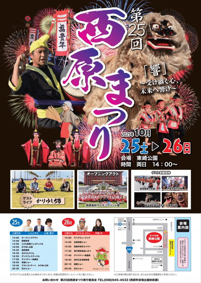 0イベント, | 0イベント, | 0イベント, | 1イベント, - ![]() 宜野湾湾岸エリアで「産業まつり」開催!家族で楽しめる2日間 宜野湾市の秋の恒例イベント「第36回 宜野湾市産業まつり」が、2025年11月15日(土)・16日(日)の2日間、宜野湾海浜公園で開催されます。地域の産業や食、 […] | 0イベント, | 5イベント, ![]() イーアス沖縄豊崎で開催される「Laugh Festival(ラフフェスティバル)」は、子どもも大人も気軽に参加できる体験型イベント!ハロウィン気分を楽しみながら、スタンプラリーやポケモンカード体験、ミニ四駆レースなど、多 […] ![]() 道の駅豊崎で、家族みんなで楽しめるハロウィンイベント「HAPPY HALLOWEEN スタンプラリー」が開催されます。道の駅の施設の4か所をめぐりながらお菓子のプレゼントがもらえます。仮装しての参加も大歓迎。かわいい衣装 […] ![]() 見どころいっぱいの2日間!秋の夜空に花火が輝く宜野座のまつり 「第33回宜野座村まつり」が、2025年10月25日(土)・26日(日)の2日間、宜野座村農村公園で開催されます。今年も子どもから大人まで楽しめるステージイベ […] ![]() 今年で25回目を迎える「西原まつり」が、東崎公園で開催されます。広い芝生の会場には飲食ブースや屋台が立ち並ぶ予定で、太鼓や歌が響きわたるステージとともに、子どもから大人まで楽しめる2日間になりそうです。 初日のステージは […] ![]() 太鼓と舞の響きに包まれる二日間 読谷の心を感じる秋のまつり 秋の夜空を彩る花火と太鼓の響き。村の誇りと笑顔が集う「第51回 読谷まつり」が、読谷村運動広場で開催されます。伝統芸能の舞台や地元グルメの屋台、子どもたちのステ […] | 8イベント, - ![]() 秋の休日は、家族みんなでハロウィン気分を楽しもう!「ちょこっとロハス 宜野湾ハロウィン」が、10月26日(日)ユニオンですからドーム宜野湾で開催されます。親子で参加できる体験やワークショップ、キッチンカーや蚤の市など、盛 […] ![]() うるま市のきむたかホールで、子どもから大人まで楽しめる「ライブラリーコンサート」~音楽で楽しむイソップ童話(アリとキリギリス)の世界~が開催されます。イソップ童話でおなじみの“アリとキリギリス”をテーマにした特別なコンサ […] - ![]() 10月26日(日)の夕方、コザ・ミュージックタウンがにぎやかな笑顔で包まれる「日曜夜市」。 エイサーの太鼓が鳴り響き、子どもたちのキッズダンスが会場を盛り上げます。ステージパフォーマンスの合間には、おいしい香りがただよう […] |
