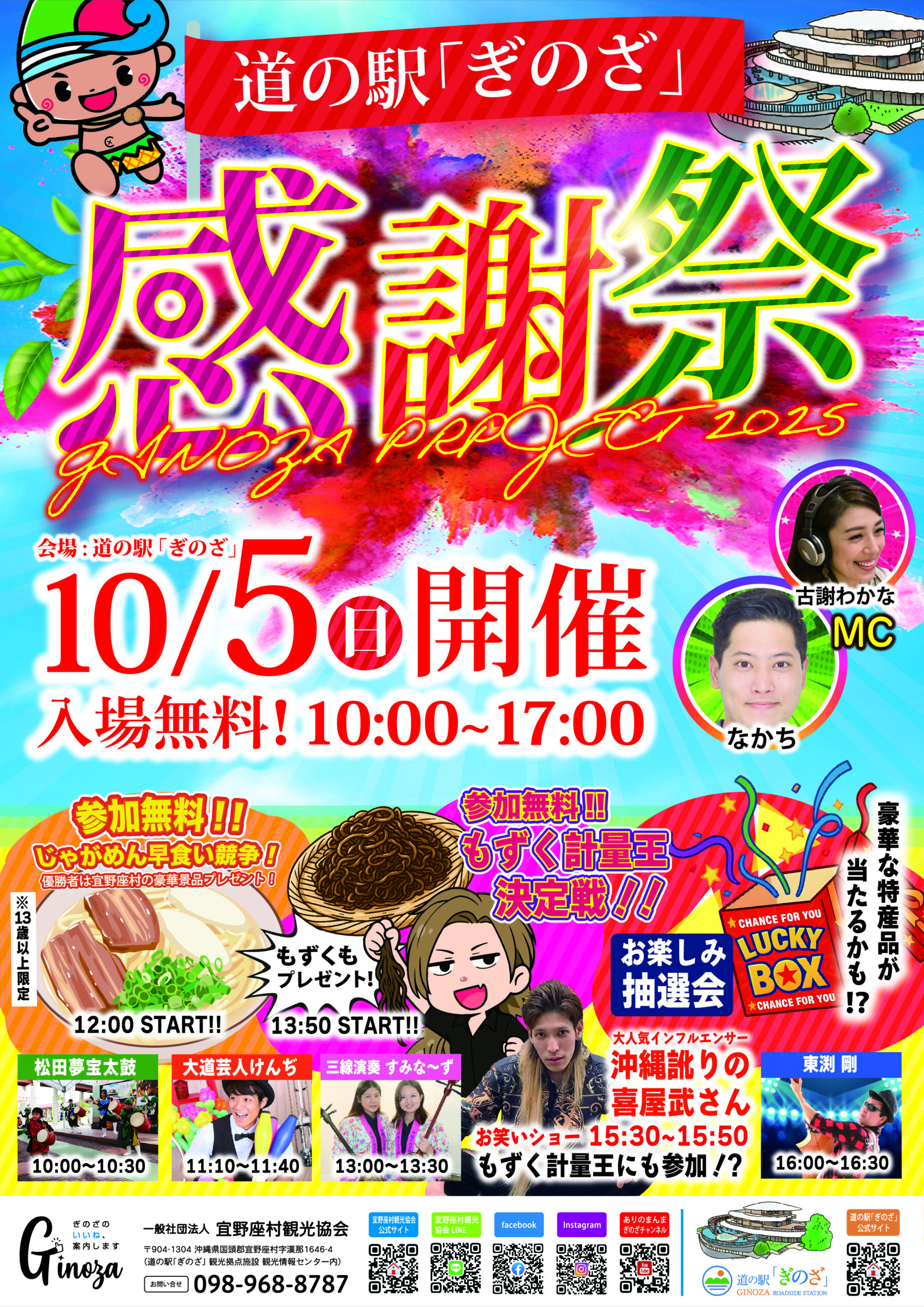 金武町の秋を彩る恒例イベント 「第46回 金武町まつり」が、2025年10月18日(土)・19日(日)の2日間にわたり、金武地区公園で開催されます。今年のテーマは「金武魂を我が心に」。地域の子どもたちのステージ発表から人 […] |